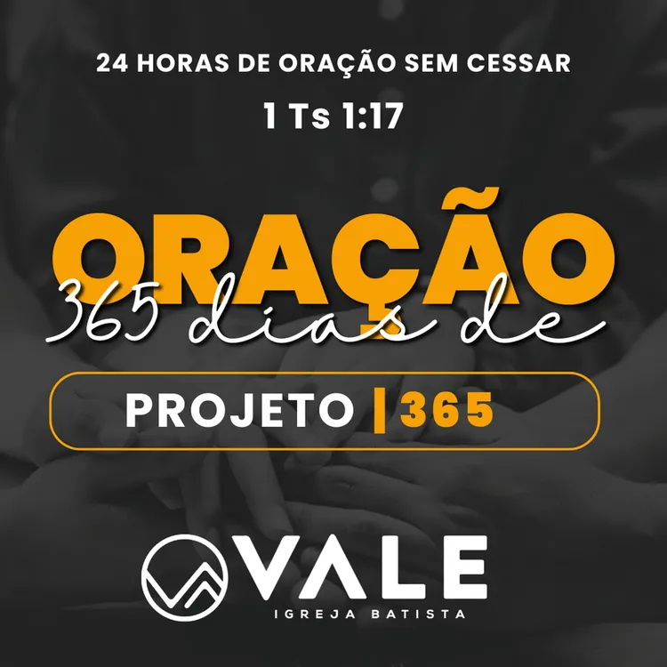 Projeto 365 Dias de Oração ininterruptas em 2025. Inicio dia 01 de janeiro de 2025. Você pode orar 1 hora a cada semana? Após a sua inscrição entraremos em contato pelo WhatsApp confirmando a sua participação e te passando todas as orientações necessárias. AS INSCRIÇÕES SÃO INDIVIDUAIS!